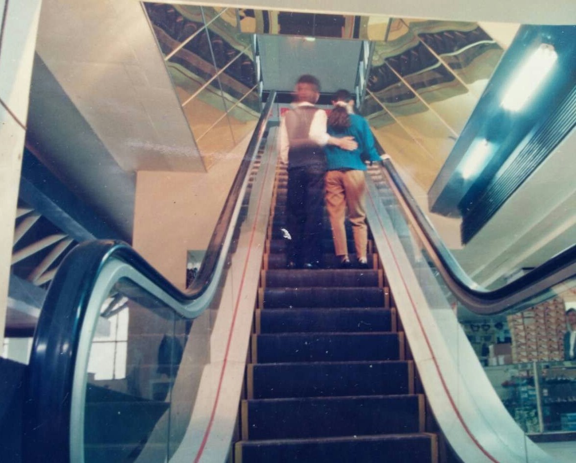 圖片為1986年公司生產(chǎn)的第一臺(tái)自動(dòng)扶梯安裝在鋼鐵城市鞍山