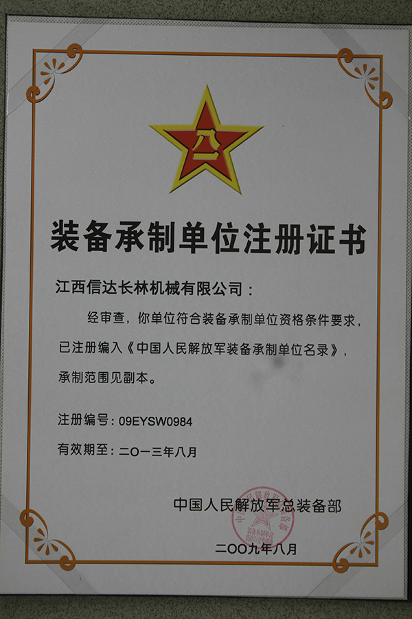 2009年裝備承制單位注冊證書
