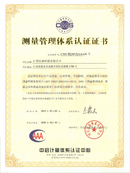 測量管理體系認證證書