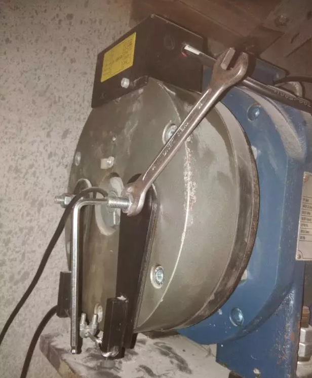上周區(qū)特檢部門對(duì)某小區(qū)的25部電梯進(jìn)行了年檢,其中有4部電梯手動(dòng)松閘時(shí)轎廂不動(dòng),被判為不合格,要求于一周內(nèi)完成整改,并將整改結(jié)果錄像上報(bào)特檢人員。沒想到第四天又接到通知,如果當(dāng)天不整改完畢將進(jìn)行罰款。因?yàn)殡娞輳S家的配件還沒有到貨,為了避免罰款不能等了,物業(yè)部門通知維保人員拆其它電梯的松閘線裝到這4臺(tái)不合格電梯上。 每次檢修抱閘部分就會(huì)想起【2015年3月23號(hào),青島一酒店電梯墜落致兩人死亡, 維保人員被判刑!】這一事件。都說修電梯是操著賣白粉的心,掙著賣白菜的錢,而修抱閘,是擔(dān)著被判刑的心,落下的是怕出事的后遺癥。 初次接觸無齒輪永磁同步曳引機(jī),在更換軟軸時(shí)走了一些彎路,維修4部電梯的松閘,3個(gè)人耗費(fèi)了將近4個(gè)小時(shí),其中包括拆掉了一套好電梯上的松閘組件,有1人去市里采購鋼絲繩和鋼絲繩卡子。下面是對(duì)本次修理的總結(jié),有些做法不一定是最恰當(dāng)?shù)?,希望高手在留言區(qū)給予指點(diǎn)。 1、關(guān)于手動(dòng)松閘的工作原理:扳動(dòng)松閘手柄,鋼絲繩被拉出,曳引機(jī)上的松閘搖臂旋轉(zhuǎn)一定角度,搖臂的旋轉(zhuǎn)壓縮搖臂下面的鋼珠,鋼珠產(chǎn)生軸向位移達(dá)到0.35毫米左右時(shí),抱閘松開。這里所說的0.35毫米是針對(duì)這種曳引機(jī)說的,其它機(jī)型可能會(huì)有不同。