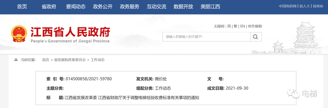 江西省發(fā)展改革委 江西省財政廳關(guān)于調(diào)整電梯檢驗收費標準有關(guān)事項的通知