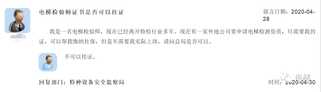 電梯檢驗(yàn)師,可以掛證嗎?總局回復(fù)來了!