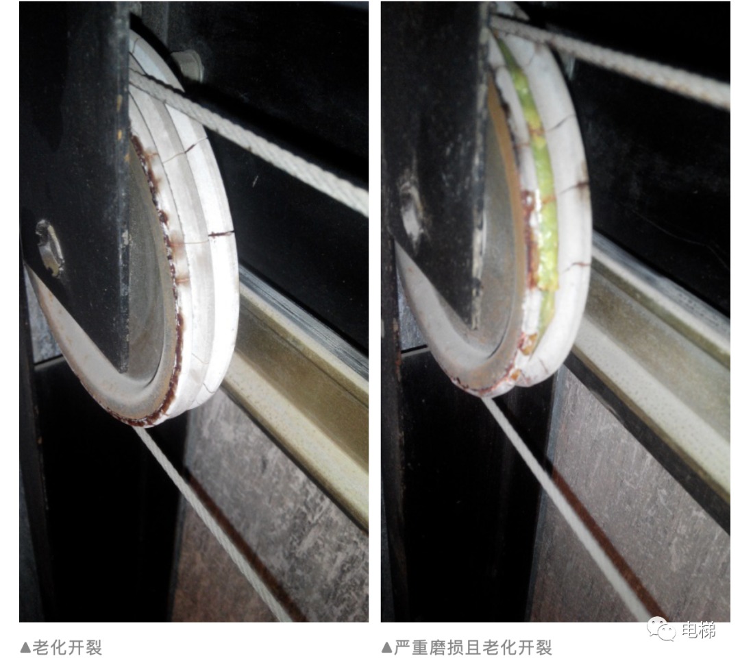 基本情況 設(shè)備名稱:曳引驅(qū)動乘客電梯(住宅電梯) 設(shè)備型號:TKJ1000/1.75-JXW 檢驗類別:定期檢驗 主要參數(shù): ![]() 主要缺陷 檢驗員在檢驗過程中,接到住戶投訴稱近期該臺電梯經(jīng)常門關(guān)不上。經(jīng)過檢查廳門及轎門的地坎和上坎,發(fā)現(xiàn)廳門上坎中的繩掛輪或門掛輪磨損破裂嚴(yán)重。 原因分析 因該小區(qū)電梯使用超過10年,累積使用次數(shù)較高,且廳門是運動最頻繁的部件之一。通過對廳門上坎中的繩掛輪及門掛輪進(jìn)行檢查,發(fā)現(xiàn)是該電梯不同樓層的繩掛輪或門掛輪都不同程度的出現(xiàn)破裂或者嚴(yán)重磨損。由于繩掛輪或門掛輪的磨損破裂,導(dǎo)致廳門運動的阻力大幅增加,廳門時常在還未完全關(guān)閉到位時,門的運動阻力已大于150N,進(jìn)而觸發(fā)廳門的再開門功能,當(dāng)在同一樓層重復(fù)多次這樣的開關(guān)門過程將導(dǎo)致電梯控制系統(tǒng)的死機。破損的繩掛輪或門掛輪是由于材料的自然老化導(dǎo)致,嚴(yán)重磨損的繩掛輪或門掛輪是由于繩掛輪的材質(zhì)與連接用鋼絲繩的硬度不匹配導(dǎo)致過度磨損。 門系統(tǒng)上的故障為常見且多發(fā)故障,占電梯故障次數(shù)半數(shù)以上,而門掛輪位置較隱蔽,維保單位往往誤判和忽略。
