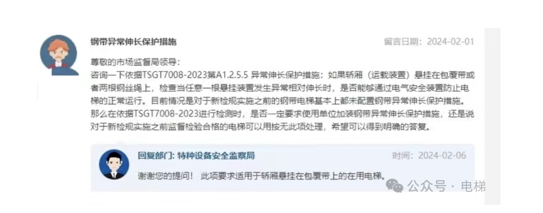 電梯鋼帶異常伸長保護措施都加裝嗎?!總局回復(fù)!